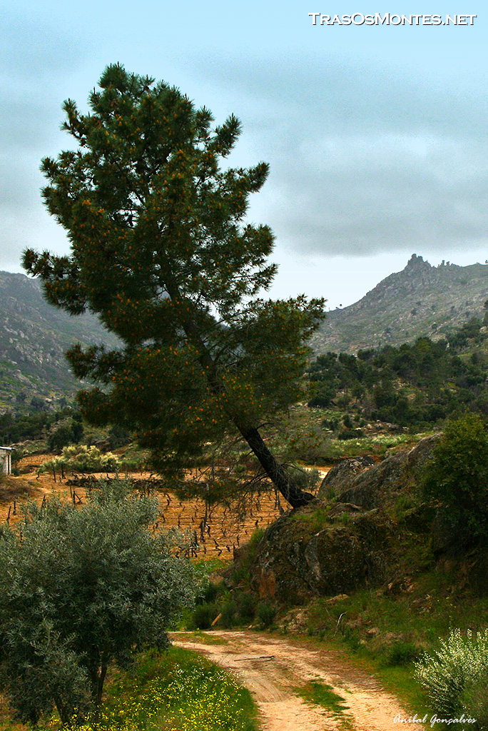 A Amélia encostava-se a um amieiro esguio, que dava «enforcado» a uma grossa e alta cepa, recamado de heras de folha pequenina.