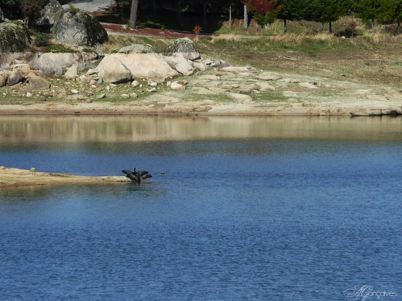 Uma imagem interessante é quando se põem com as asas esticadas ao sol, depois de uma sessão de pescaria. Embora já os tenha visto várias vezes na Barragem de Fontelonga (Carrazeda de Ansiães), foi a primeira vez que os vi nesta barragem. O nome científico destas aves é Phalacrocorax carbo.