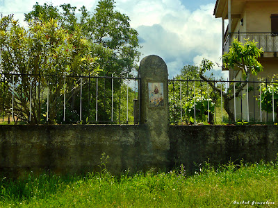 O desafio seguinte é, quanto a mim, bem mais fácil. É mais um painel de azulejos mas representa uma Nossa Senhora (estamos no mês de Maria) muito venerada no concelho. Talvez o mais fácil seja mesmo identificar a imagem da Senhora, porque depois é fácil saber a aldeia (isto se conhecerem minimamente as festas e romarias do concelho, ou se têm estado atentos a este blogue). O painel está num sítio muito visível e por mim muito visitado.