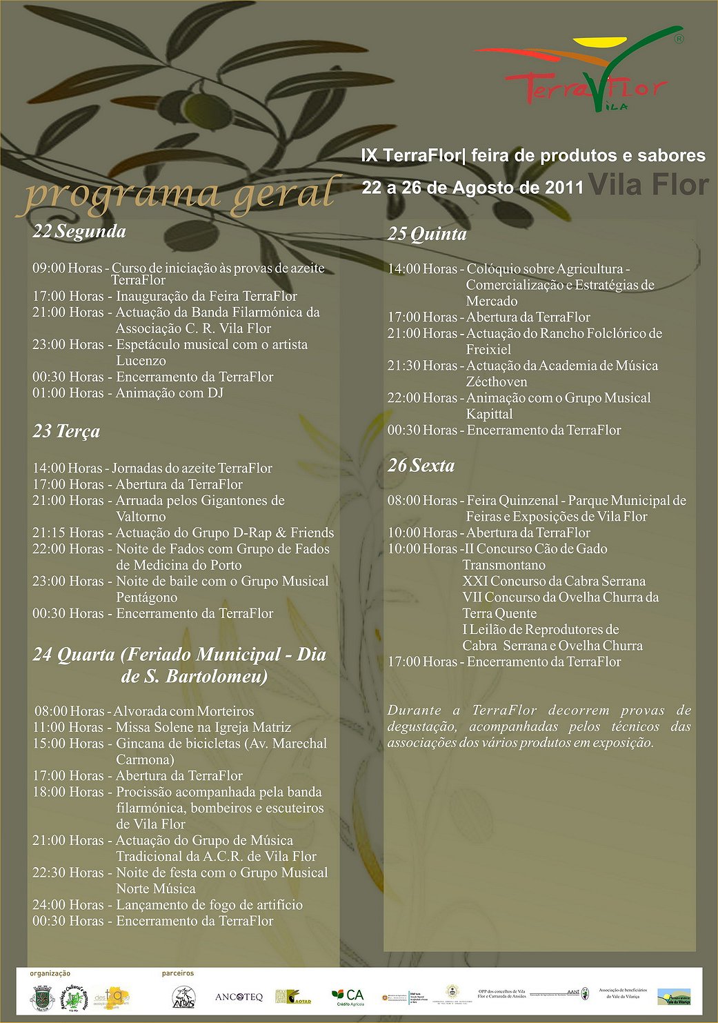 O evento, que vai cumprir a sua IX edição, aparece este ano, em moldes completamente diferentes dos habituais, quer nas datas, quer nos espaços que vão ser utilizados. Nas palavras do presidente da edilidade, Dr. Pimentel, as alterações devem-se a duas razões: a primeira tem a ver com a contenção orçamental, esperando-se que a realização de 2011 leve a organização a fazer metade da despesa verificada em 2010 (no conjunto da TerraFlor e Festa de S. Bartolomeu). A segunda razão, é a possibilidade de abranger a comunidade de emigrantes do concelho, que no mês de Agosto se encontra em massa na sua terra natal.