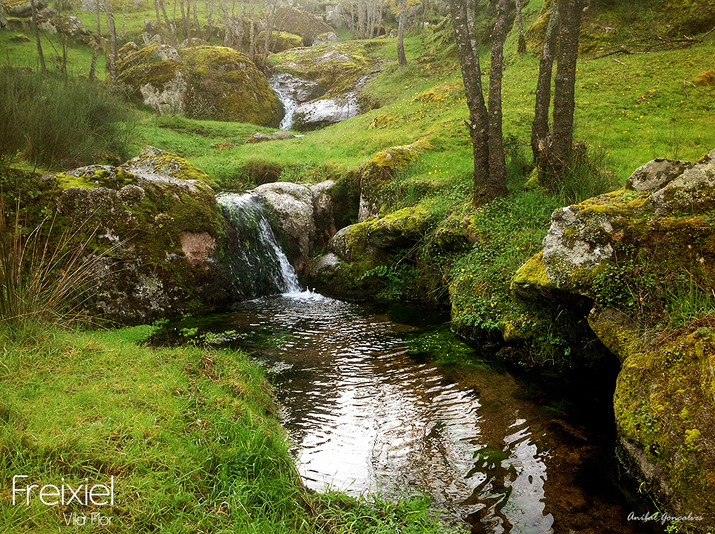 Ribeira da Cabreira, depois de passar junto à aldeia de Freixiel.